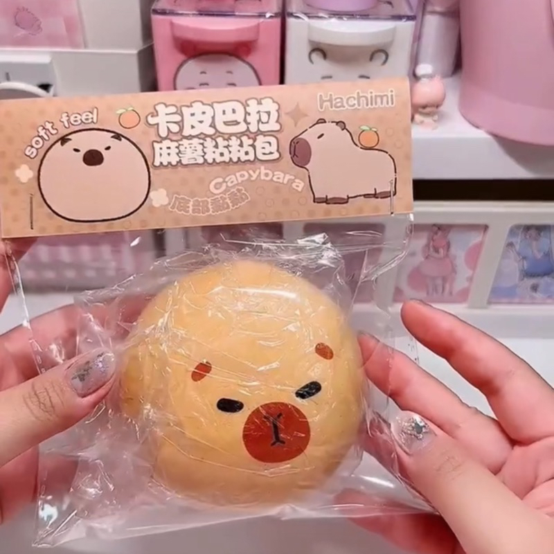 This adorable capybara squishy feels so doughy you won't believe the texture! The back side has an ASMR texture with a plastic covering ~